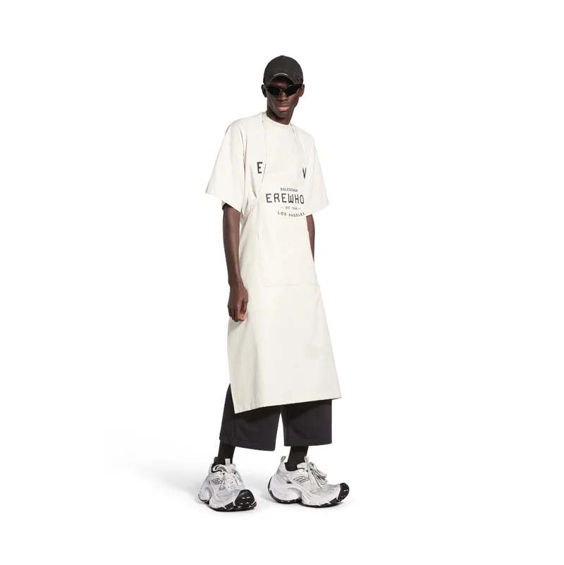 На показе также были представлены кроссовки 10XL с необычной подошвой, и коллаборация с Erewhon, включающая худи и футболки, фартук, а также сумку-тоут и кепку. А линейка "No logo", созданная совместно с Jacob & Co., оказалась трикотажными толстовками и брюками с большой надписью "NO LOGO". Смотрится довольно забавно.