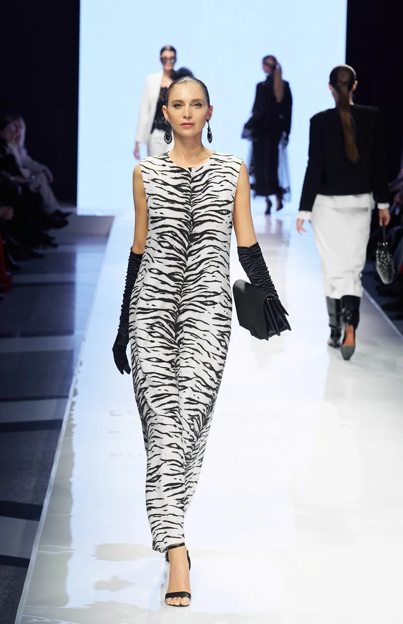 На подиуме было место и элегантной женственности в оливковых и горчичных цветах. Анималистические принты также не теряют свою актуальность - в этом сезоне вновь популярна черно-белая зебра. Элегантные боди с сеткой идеально смотрятся с костюмом, полупрозрачные блузы можно смело носить вместо пеньюара.