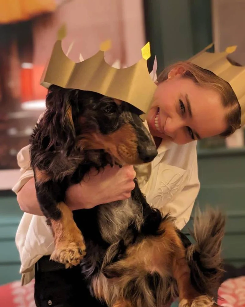 Звезда "Игры престолов" тоже опубликовала снимок с собакой. Бумажная корона явно велика псу, но он старательно позирует для подписчиков девушки.