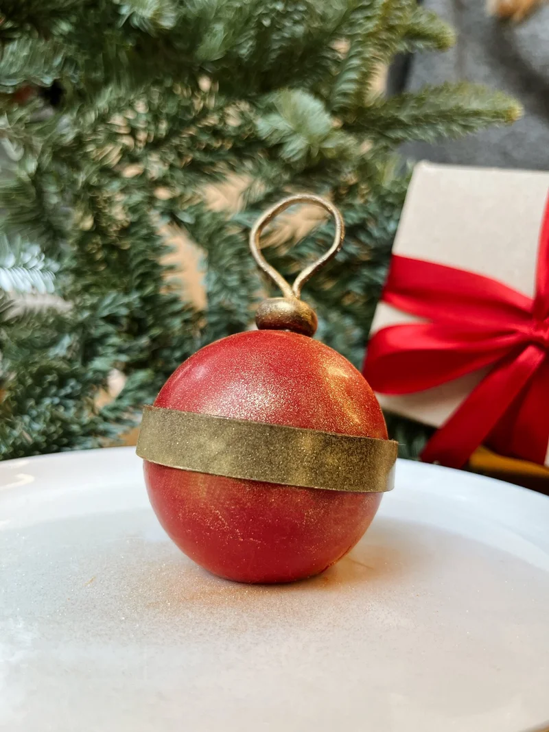 Только до 13 января в Nobo подают десерт "Новогодний шар". Шеф-кондитер Рамазан Гильмутдинов создал его в коллаборации с брендом косметики для волос Kevin Murphy. Шар сделан из белого шоколада с начинкой из карамельного ганаша и хрустящего кофейного крамбла. Кстати, к каждому заказу десерта преподносят подарок от бренда.