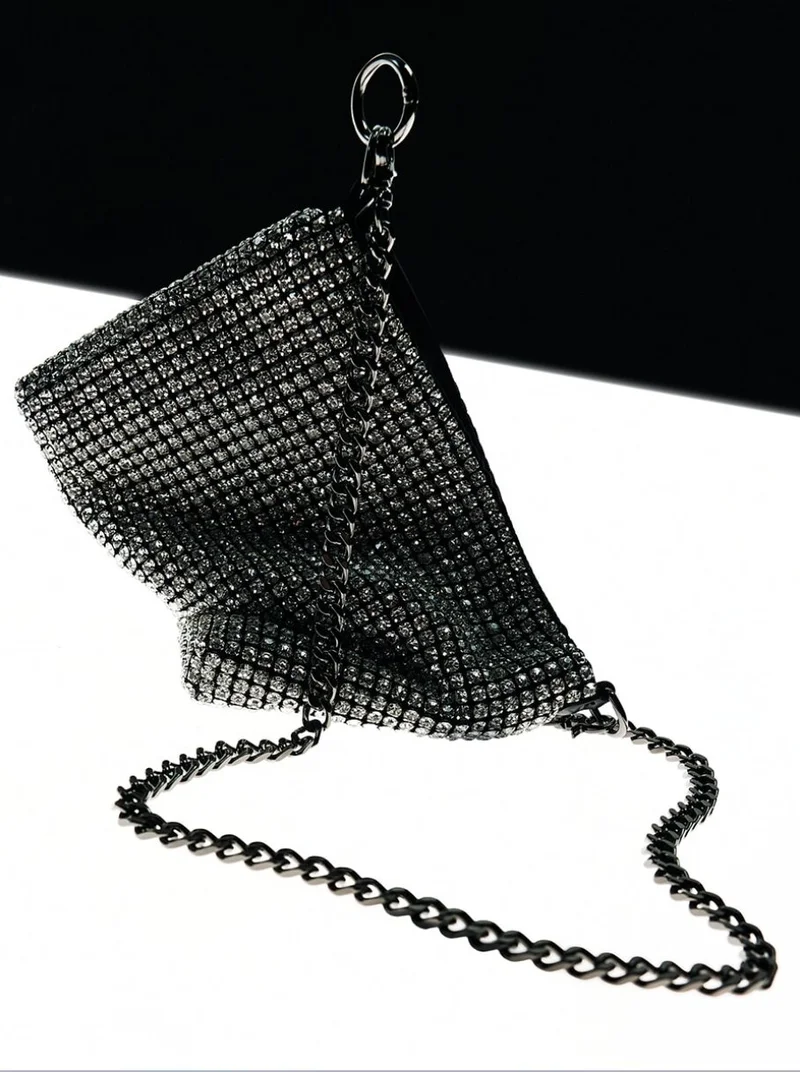 Мягкая сумка-клатч со стразами и ремешком в виде цепочки - универсальная модель, которая станет прекрасным дополнением акцентного гардероба. Ее можно сочетать практически с любыми нарядами.