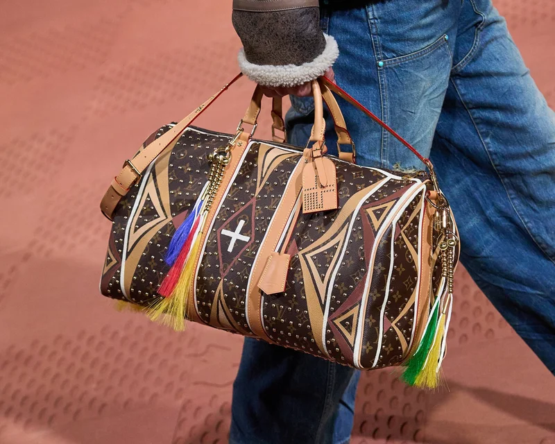 Также модельер разбавил коллекцию знакомыми пикселями и очередными вариантами всеми любимых сумок Speedy: индейские орнаменты, коровий принт, тиснение "под рептилию", самые разнообразные расцветки с логотипом LV - выбирать можно бесконечно.