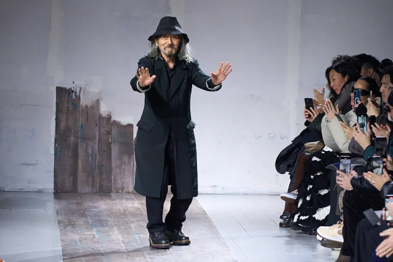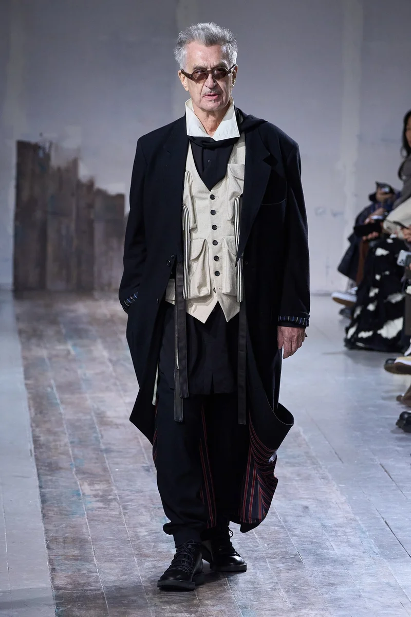 Йоджи Ямамото в финале показа мужской коллекции Yohji Yamamoto в Париже, 2024 Источник фото: Francois Durand/Getty Images
