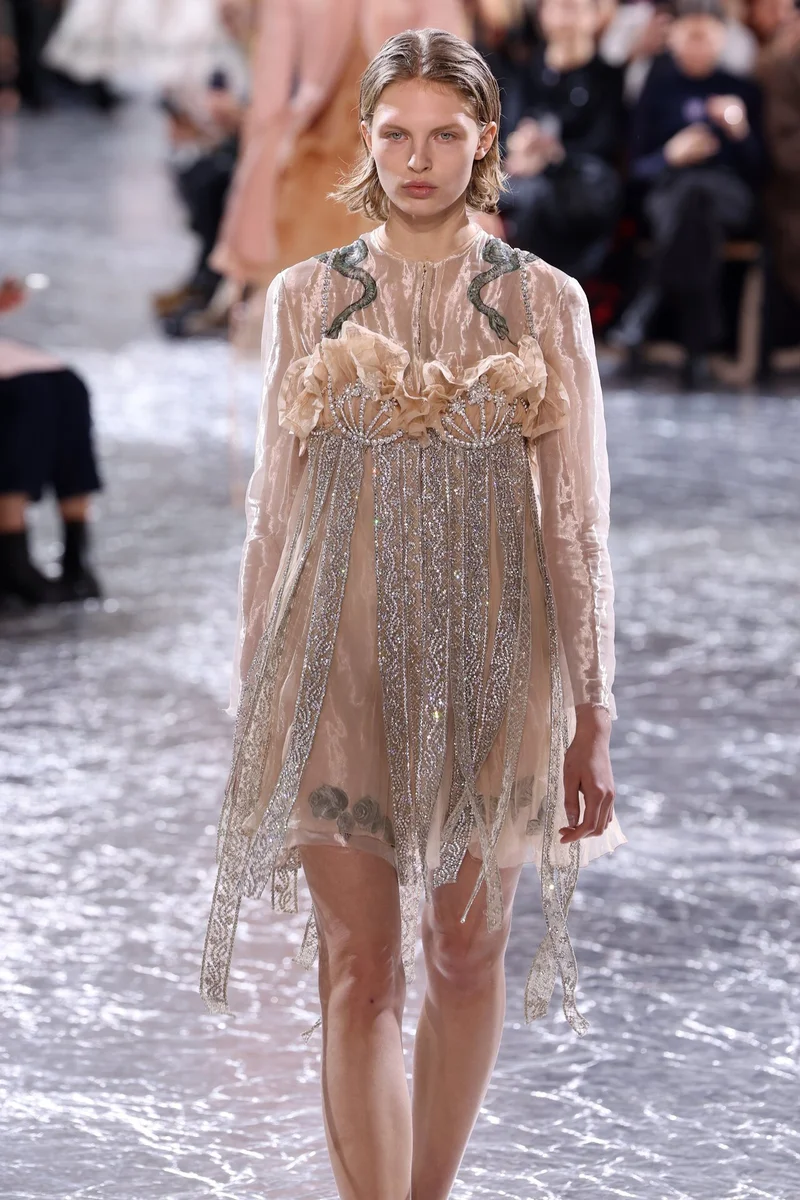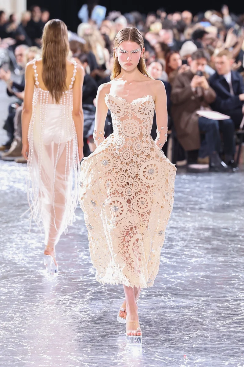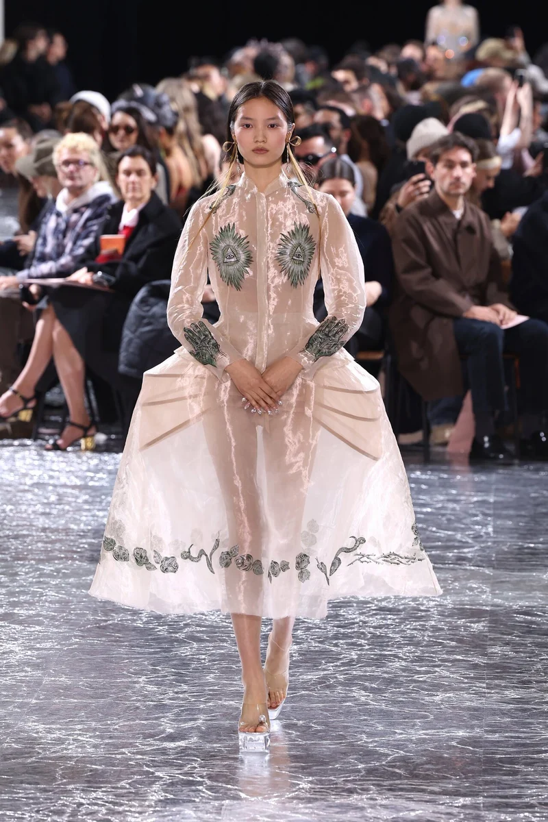 В коллекцию вошли: архитектурные кружевные платья, эффектные костюмы с акцентированными деталями, А-силуэтные наряды с пышными юбками и утонченные полупрозрачные образы. Количество деталей просто поражает - этот показ точно захочется пересмотреть еще не раз.