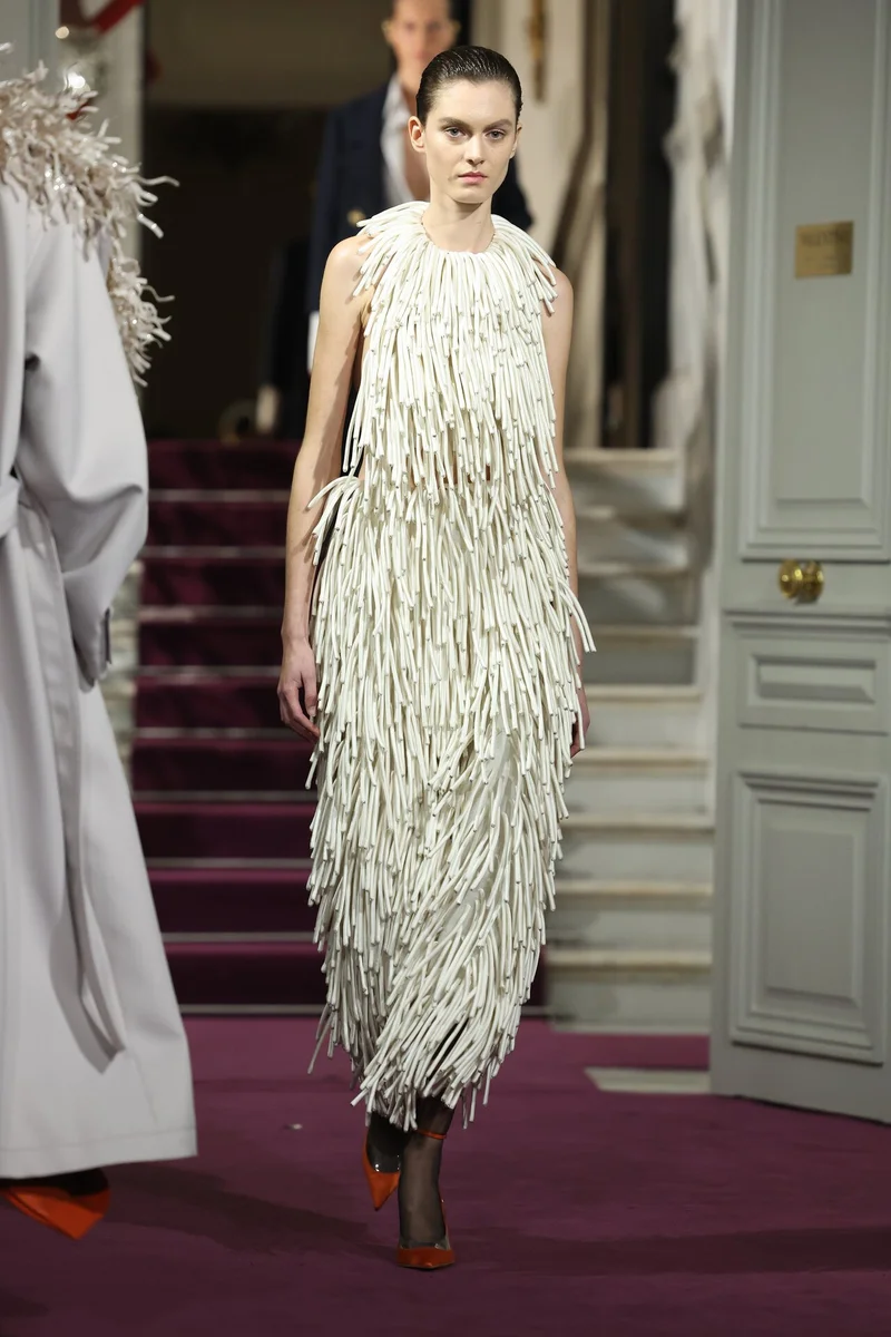 В этом сезоне кутюрье уделил особое внимание объемным фактурам: множество цветов, некое подобие мишуры, перья и бахрома сопровождали практически каждый выход. Коллекцию Valentino обязательно стоит увидеть поближе.