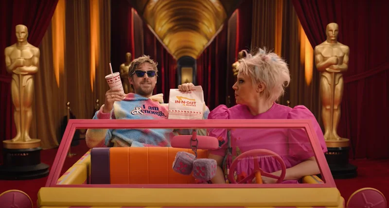 В ролике также снялись актеры фильма "Барби": Райан Гослинг, Америка Феррера и Кейт МакКиннон. Чтобы не пропустить церемонию, Джимми отправляется к странной Барби, чтобы она помогла ему выбраться. Почти 5-минутное видео получилось невероятно забавным: герои едут через локации фильмов-номинантов премии и ведут просто уморительный диалог.