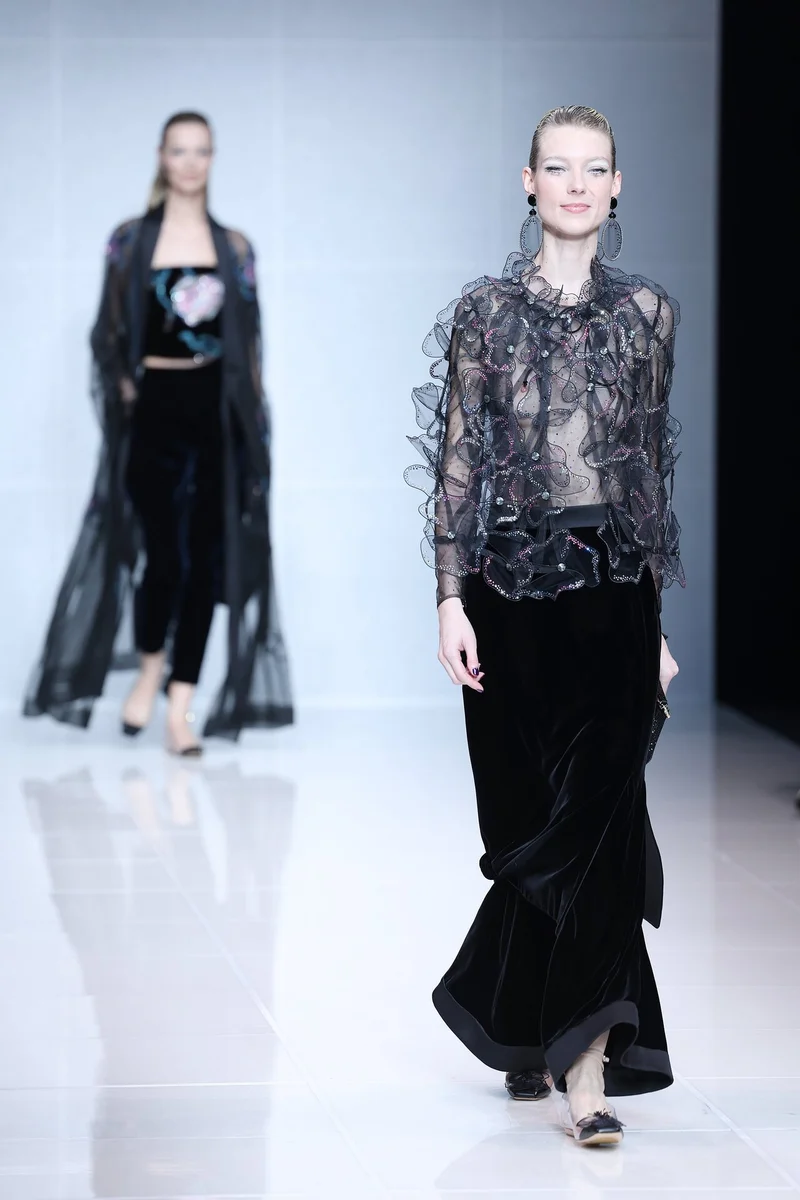Джорджо Армани остается верен себе - изящные женственные силуэты, спокойные оттенки и утонченность. Модельер представил новую коллекцию, которую вновь можно назвать "вне времени".