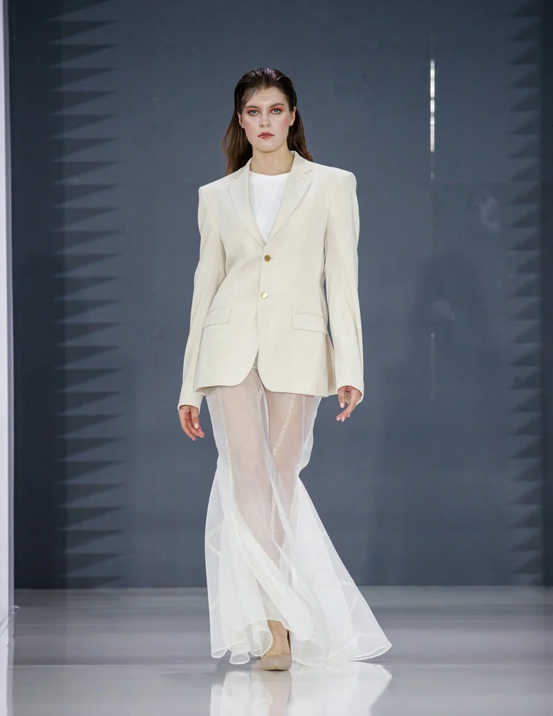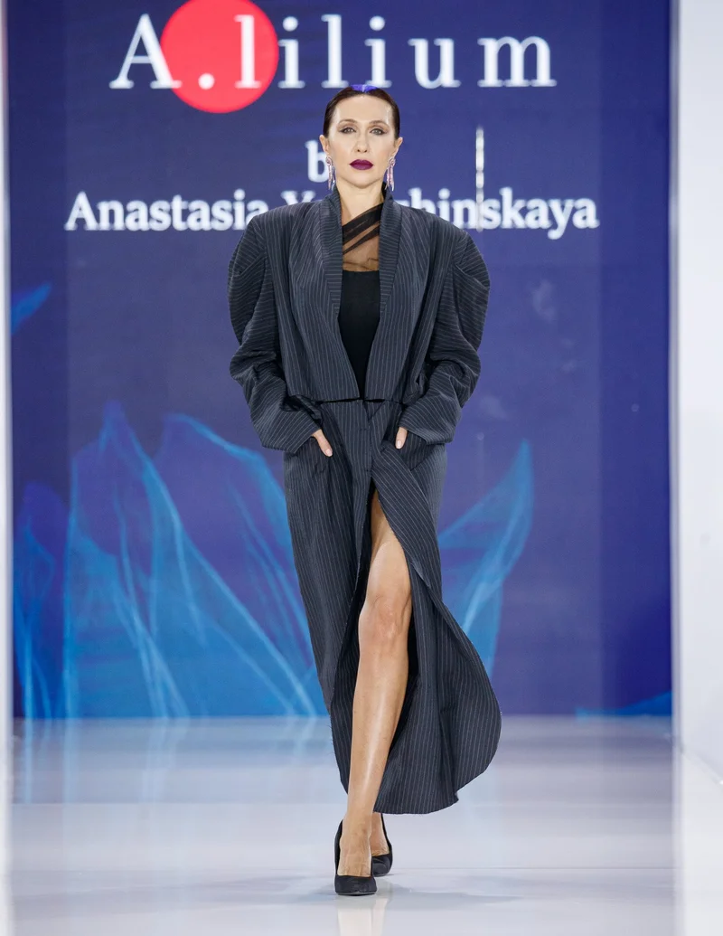 Третий день Московской недели моды в Зоне культурных проектов Международной выставки-форума "Россия", в 75-м павильоне ВДНХ открылся показом дизайнера из Санкт-Петербурга Анастасии Ягужинской. В основе женской коллекции бренда A.lilium оказался приталенный пиджак и его вариации: жакет-спенсер, удлиненный жилет или платье-пиджак. На подиуме модели продемонстрировали комплекты с фатиновыми и гипюровыми юбками, сложными объемными или деконструированными рукавами, которые чередовались образами с обтягивающими платьями, украшенными широкой бахромой и булавками.
