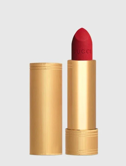 Матовая губная помада Rouge à Lèvres Mat от Gucci, оттенок Goldie Red. Шикарно оформленный тюбик притягивает внимание. Эту помаду можно наносить от полупрозрачного до насыщенного красного цвета.