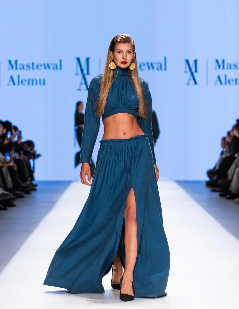 На Московскую неделю моды дизайнер из Эфиопии Мастевал Алему привез свою новую весенне-летнюю коллекцию. Модели примерили роскошные вечерние платья с крупными оборками, высоким вырезом по бедру, корсетной шнуровкой и пышными рукавами. Бренд использует только натуральные и качественные материалы, поэтому такой наряд можно смело выбирать для самого важного события.