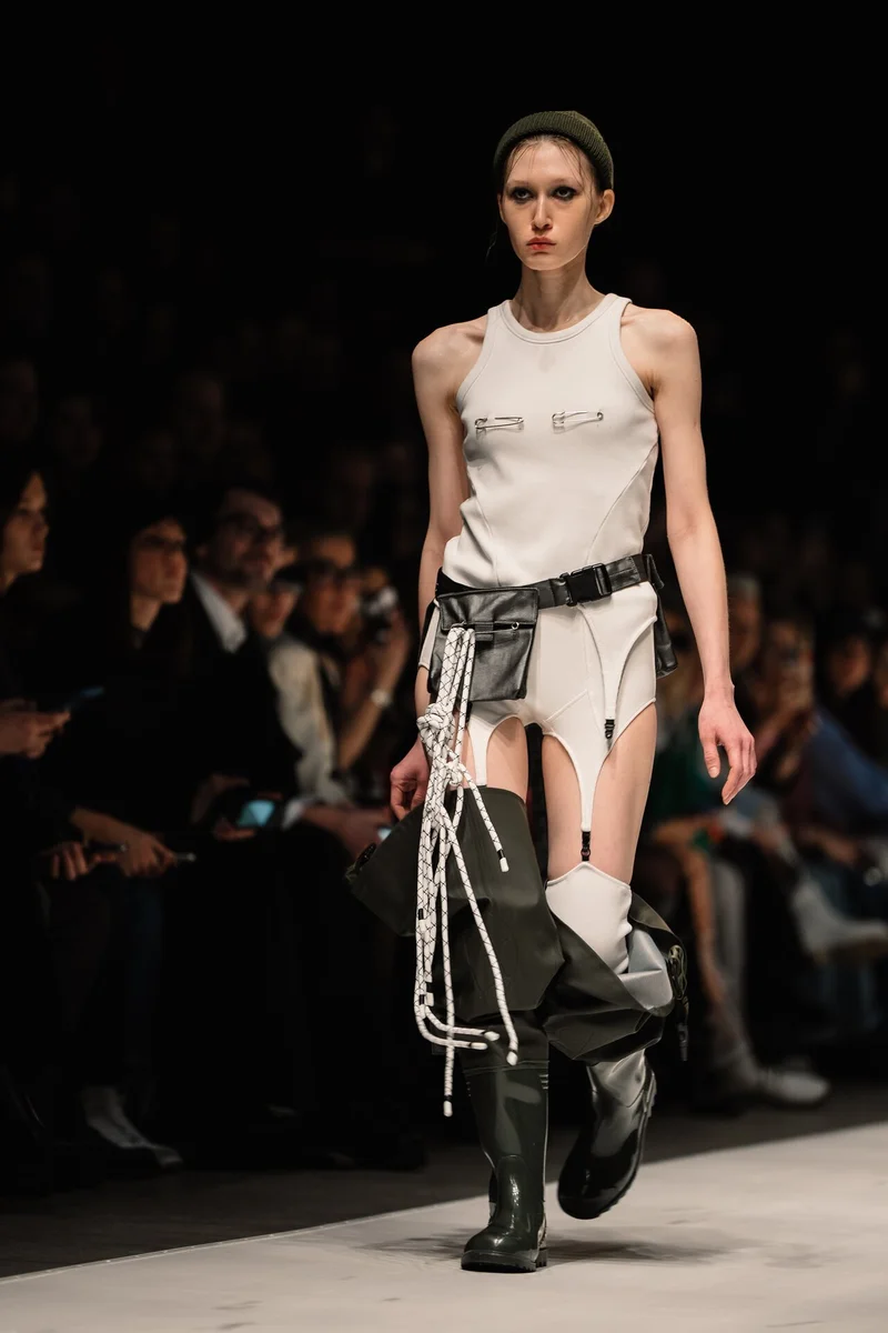 Легкие кружевные платья, отражающие невинность и изящность, сочетаются с корсетами и юбками, украшенными рыбацкими шнурами, добавляют образам элемент иронии и сексуальности одновременно. Смотрится невероятно интересно и стильно.