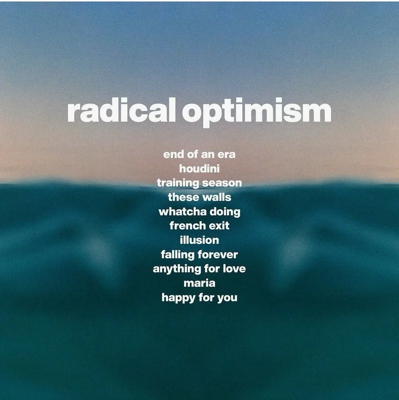 О своем грядущем альбоме Липа рассказала: для его создания она погрузилась в историю психоделии, трип-хопа и брит-попа. Также она поделилась обложкой Radical Optimism, на которой певица плавает с акулой. Автором снимка стал Тайрон Лебон.