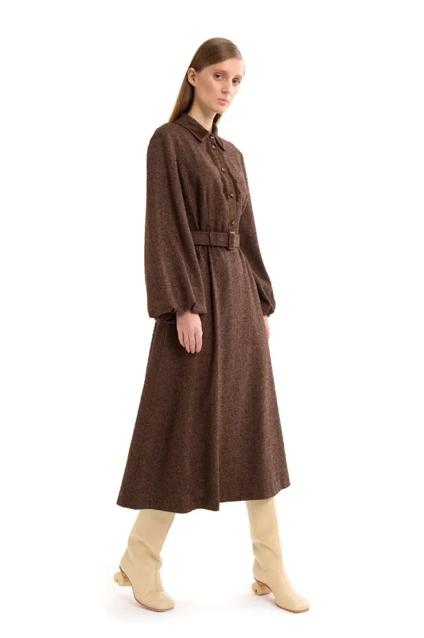 Стиль и комфорт в одной модели. Шерсть и кашемир наряда не дадут замерзнуть обладательнице платья.