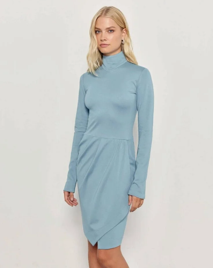Нежно-голубое платье из джерси. Драпированная юбка создает очень трогательный образ.