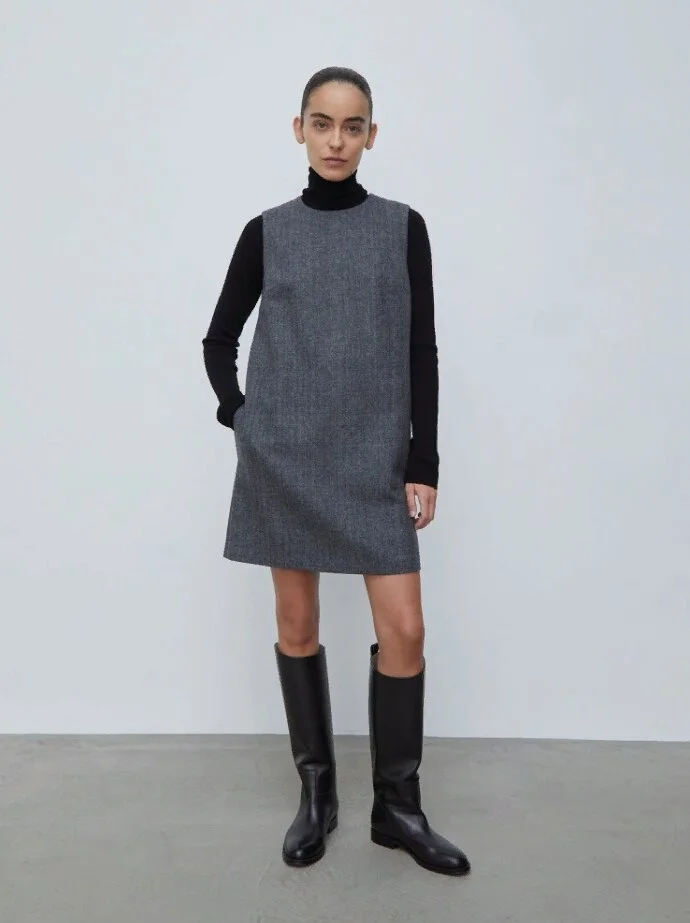 Платье от знаменитого дизайнера из шерстяного твида смотрится очень минималистично. Замечательный образ для зимних выходов.