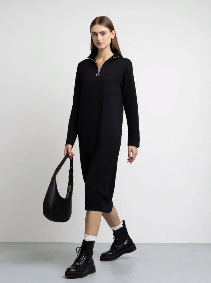 Черное платье с акцентной молнией. Отличный вариант на каждый день.