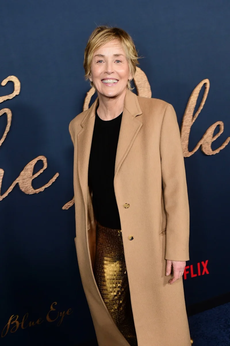 Легенда кинематографа на этот раз практически без макияжа. Яркой деталью ее образа стали шикарные золотистые брюки. Шэрон знает как расставить акценты.