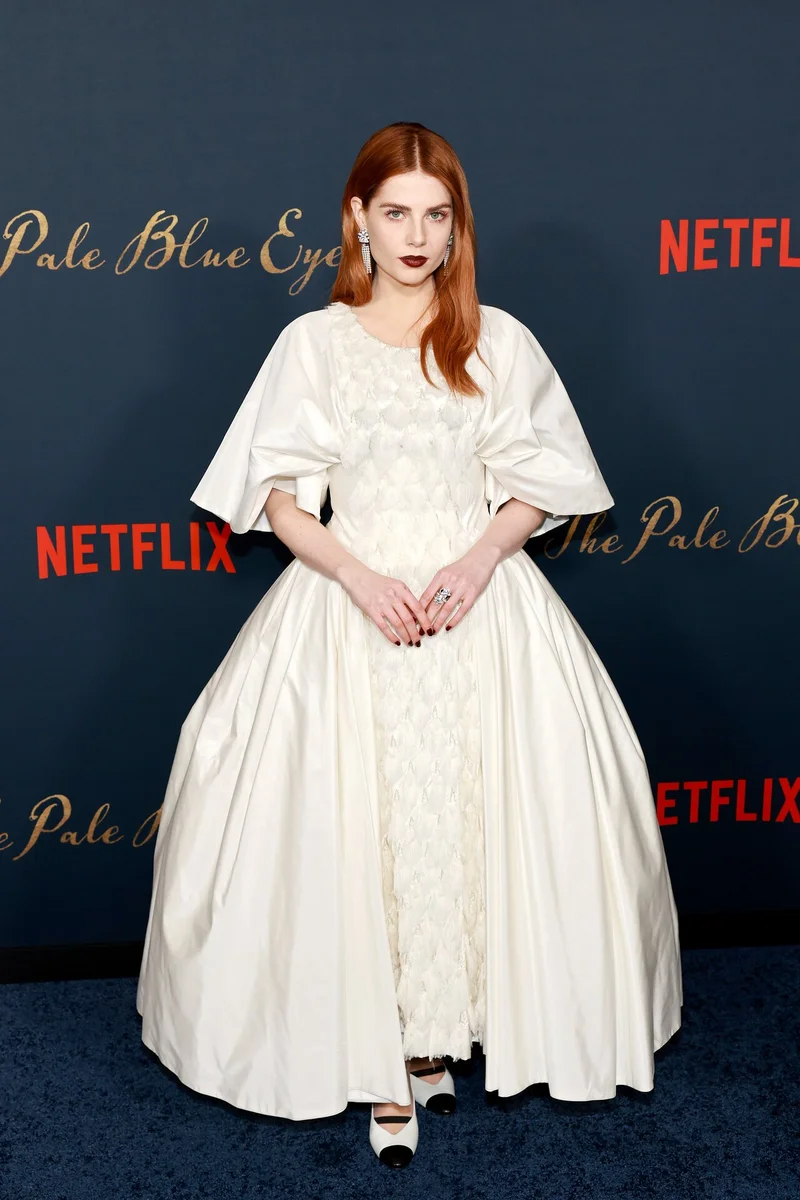 Актриса появилась в шикарном новом образе. Пышное платье нежного светлого оттенка здорово контрастирует с цветом волос и яркой помадой. Серебряные украшения также отлично смотрятся.