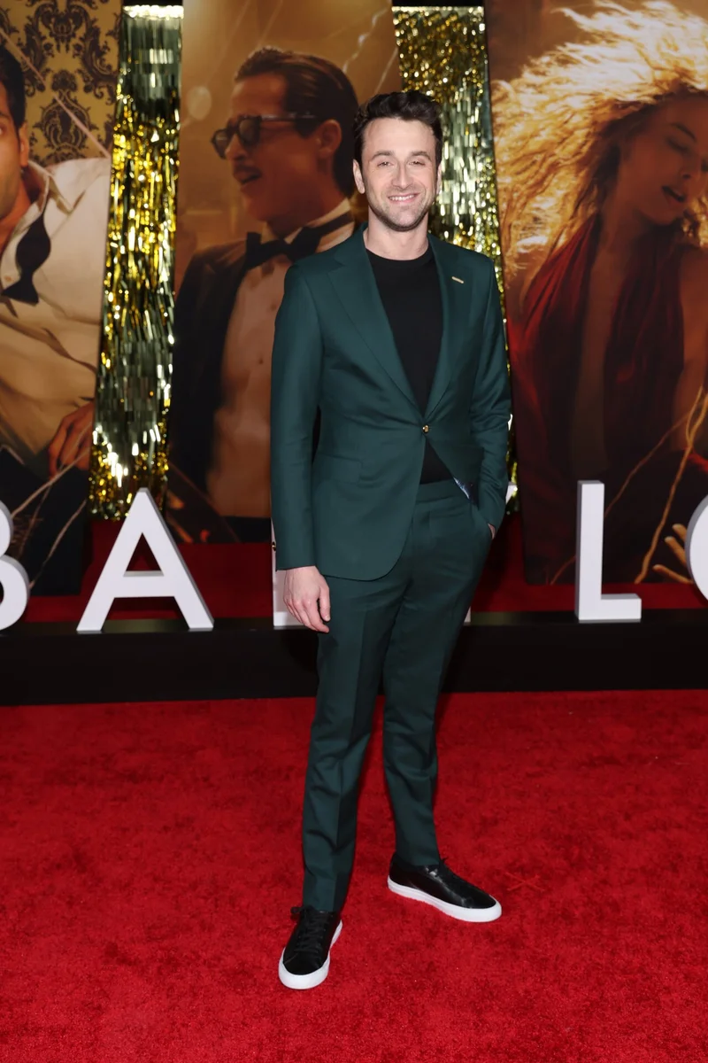Американский композитор и сценарист в зеленом костюме и черных кожаных кедах. Стильный привлекательный образ.