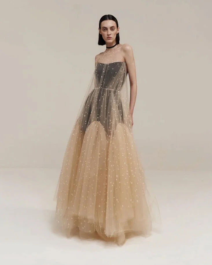 Волшебное платье из фатина с кристаллами. Невесомое облако с каплями росы поверх черного шелкового мини - сказочно красиво.