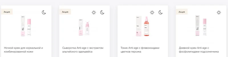 Бренд выпускает несколько линеек уходовой косметики: для сухой, комбинированной кожи и тех, кто борется с возрастными изменениями. Составы у этих средств хорошо прописаны, имеют минимум сомнительных ингредиентов. Производитель уверяет, что при регулярном использовании одной из выбранных линеек женщинам не придется использовать декоративную косметику для маскировки проблем.