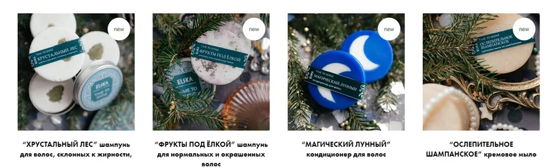 Уходовая косметика в основном сухая. Покупатели хвалят твердый шампунь, стойкий парфюм, средства по увлажнению рук и кожи лица. Благодаря уникальному составу уходовые средства имеют яркий аромат. Например, у Elska есть шампунь с ароматом снежных фруктов или таежного мха.