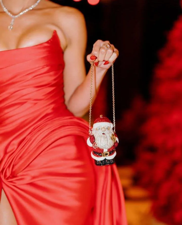У многих девушек знаменитой семьи в этот вечер были в руках забавные сумки в виде Санта-Клауса.