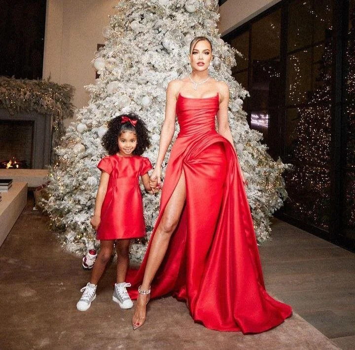 Хлои с дочерью надели красные платья и выглядели сказочными принцессами. От платья третьей сестры Кардашьян невозможно отвести взгляд.