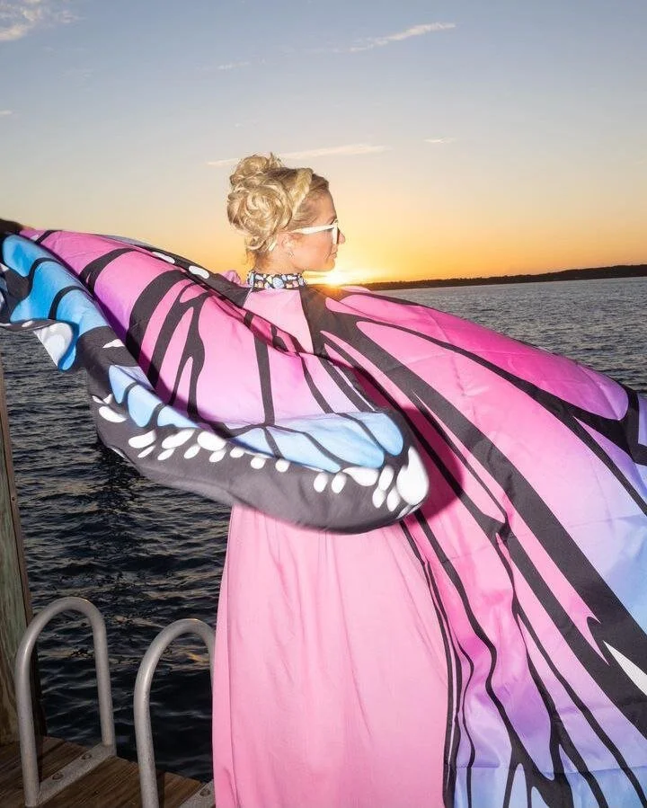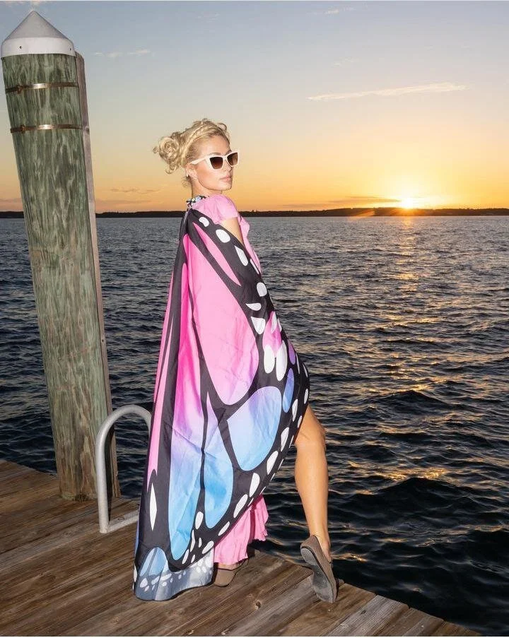 Ранее Хилтон показала свой образ “багамской бабочки” в накидке экзотической расцветки. Милые фотографии на закате собрали множество комментариев, в том числе и Картера. Мужчина написал: “Самая симпатичная бабочка на Земле”.