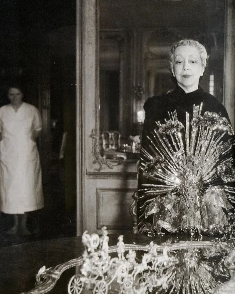 Эльза Скиапарелли в накидке с вышивкой Apollo of Versailles Источник фото: Фотография из социальных сетей бренда Schiaparelli