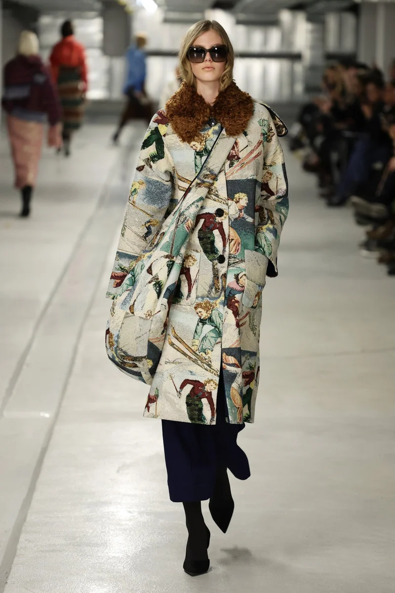 Сумки большого размера, меховая отделка и длина миди заметны и здесь. Однако, создатели обошлись минимальными проявлениями последних трендов.