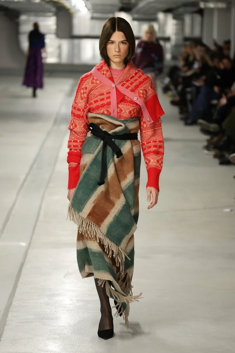 Еще одна особенность коллекции - многослойность. Практически каждый наряд состоит из нескольких элементов. Много шарфов, бантов и дополнительных свитеров, закрывающих шею. Очень интересные сочетания.