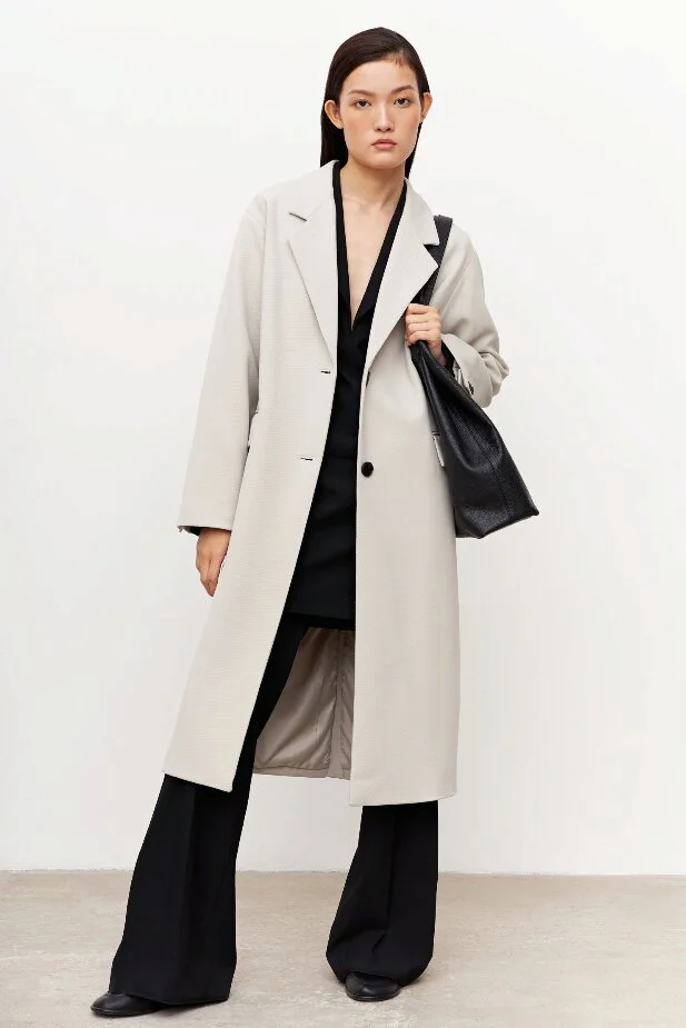 Текстильное светлое пальто - отличный выбор для грядущей весны. Модель может дополнить как классический образ, так и более неформальный.