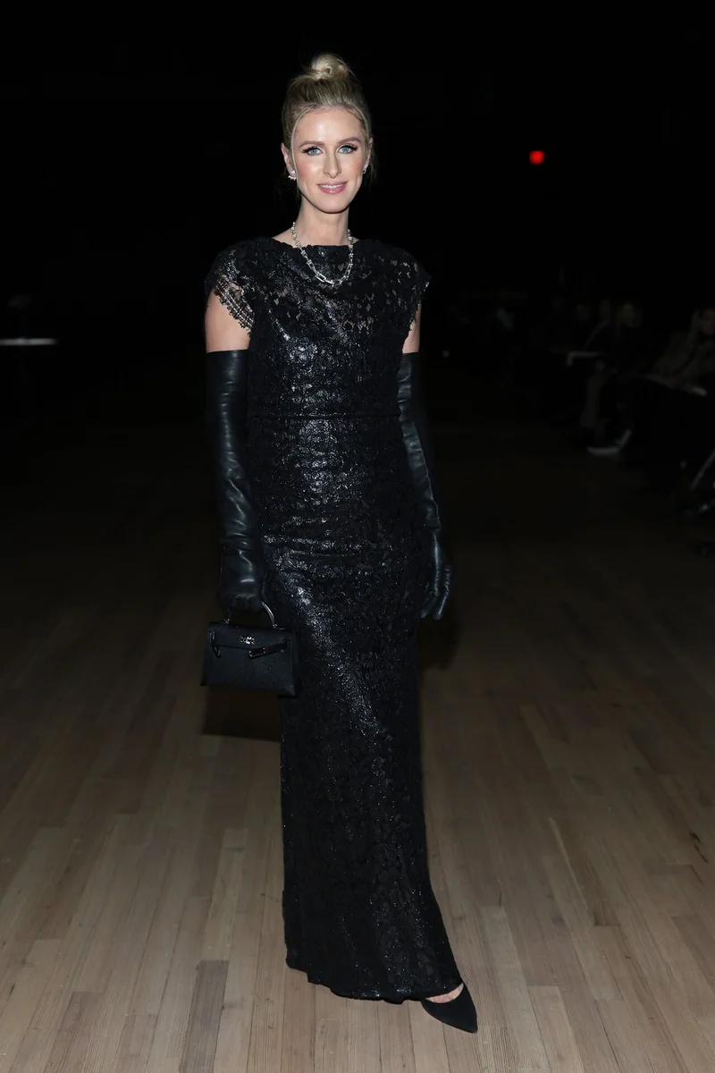Отметилась на модном мероприятии и сестра Пэрис Хилтон, Ники Хилтон-Ротшильд. Ее силуэтное платье с перчатками выглядит очень элегантно.