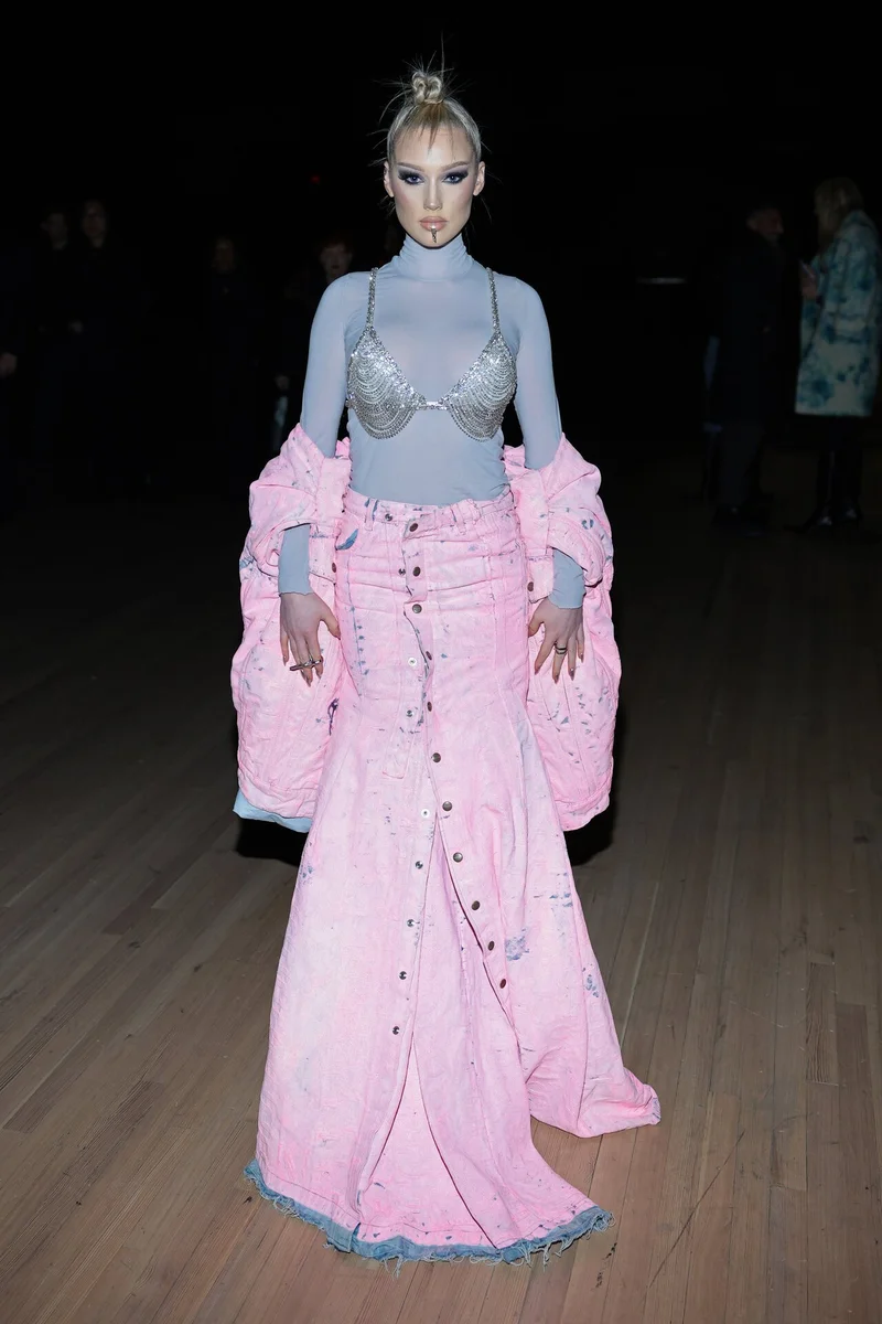Эмили Ратаковски стала гостем мероприятия и также, как и большинство моделей, примерила на себя образ легендарной панк-кутюрье.
