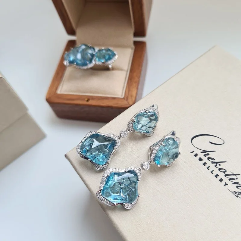 Российский ювелирный бренд поделился впечатляющим результатом своей работы. Серьги и кольцо с аквамаринами и бриллиантами выглядят действительно фантастически.
