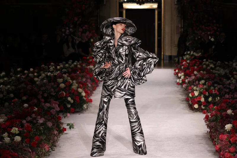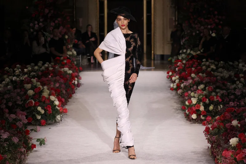 Звездный дизайнер представил новую коллекцию в “Розовом саду Одри”. Он показал свою интерпретацию широкополых шляп, а также множество цветочных нарядов.