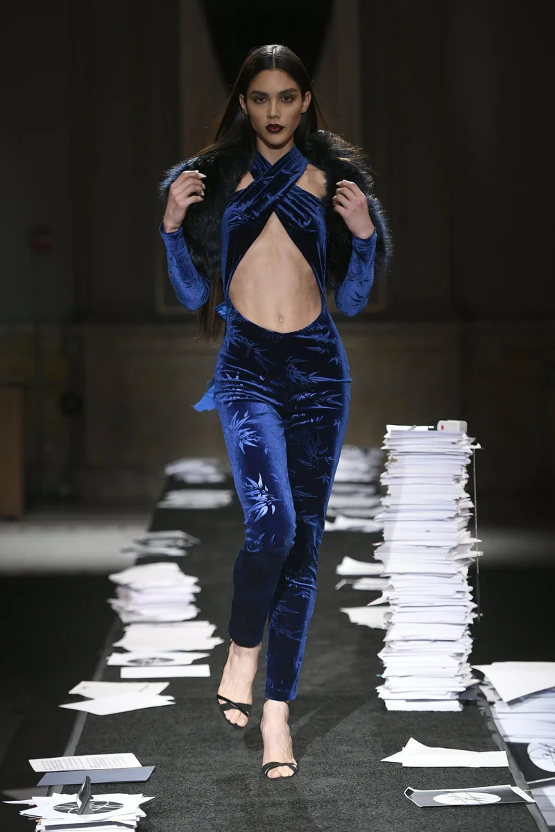 Показ Kim Shui на Неделе моды в Нью-Йорке: гипюр, пайетки и мех