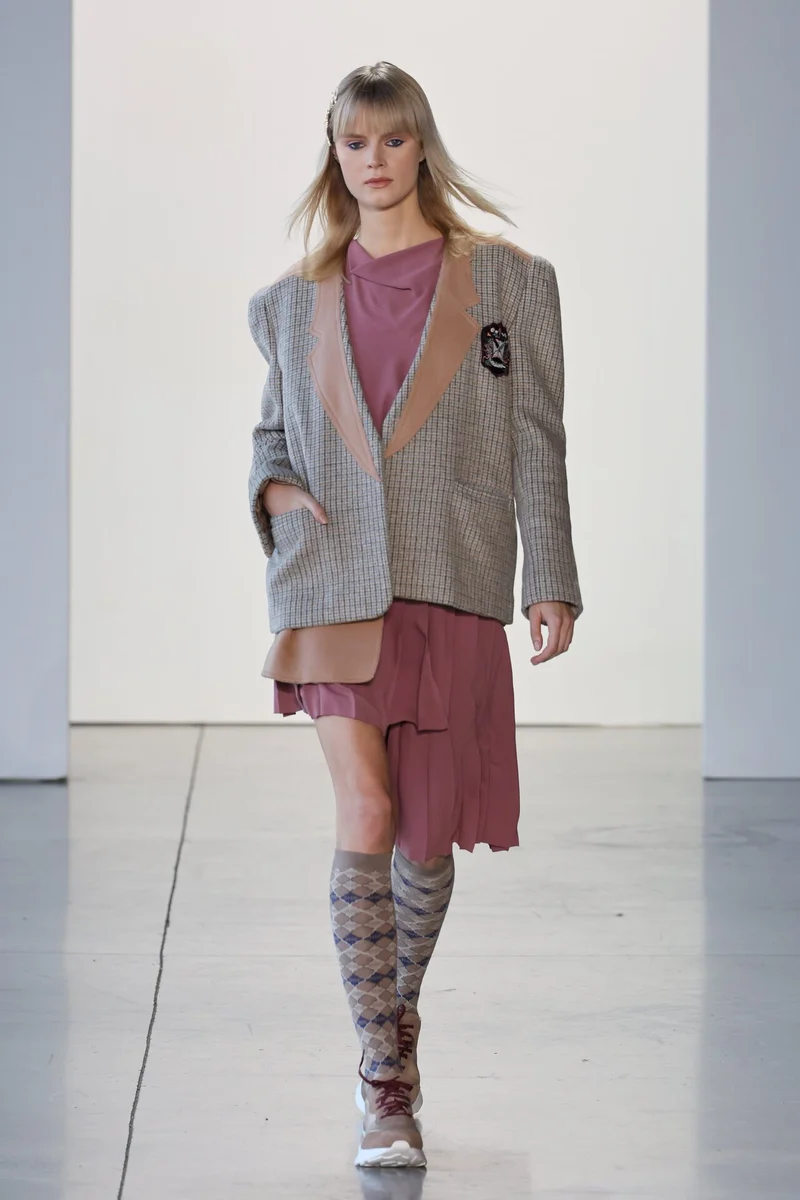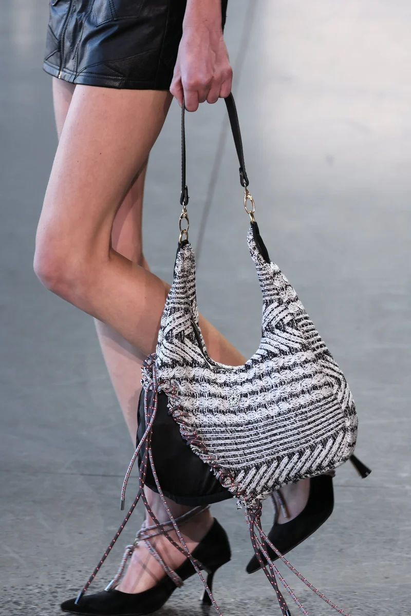 Большинство манекенщиц выходили в кроссовках, либо туфлях на невысоком каблуке. Все наряды коллекции можно представить как на улицах города, так и на модных вечеринках.