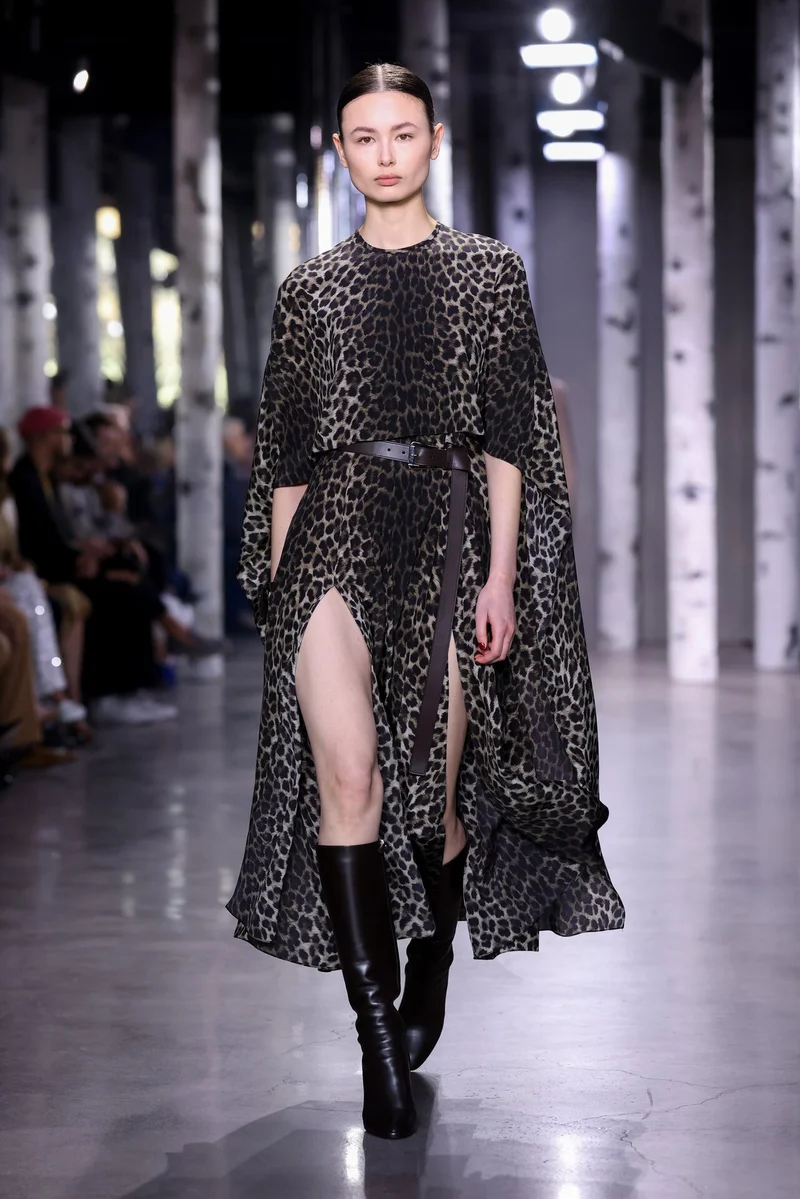 Мода на анималистичные принты не могла пройти мимо Michael Kors. Платье с разрезами смотрится актуально и стильно.