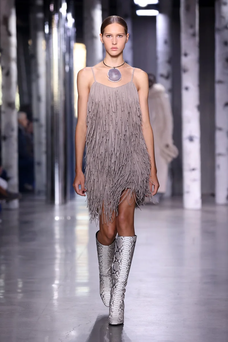 Платье с бахромой напоминает образы певиц 90-х, клипы в стиле кантри и виды пустыни. Интересно, вдохновятся ли звезды такими моделями.