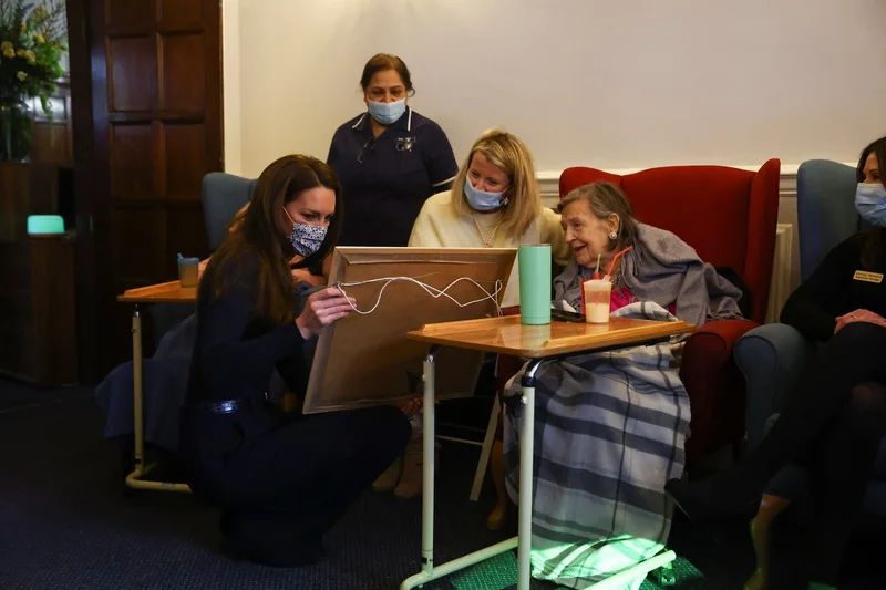 Также принцесса Уэльская уделила время для общения с жителями центра, с одной из них обсудила картину и явно развеселилась во время беседы с пожилым джентльменом.