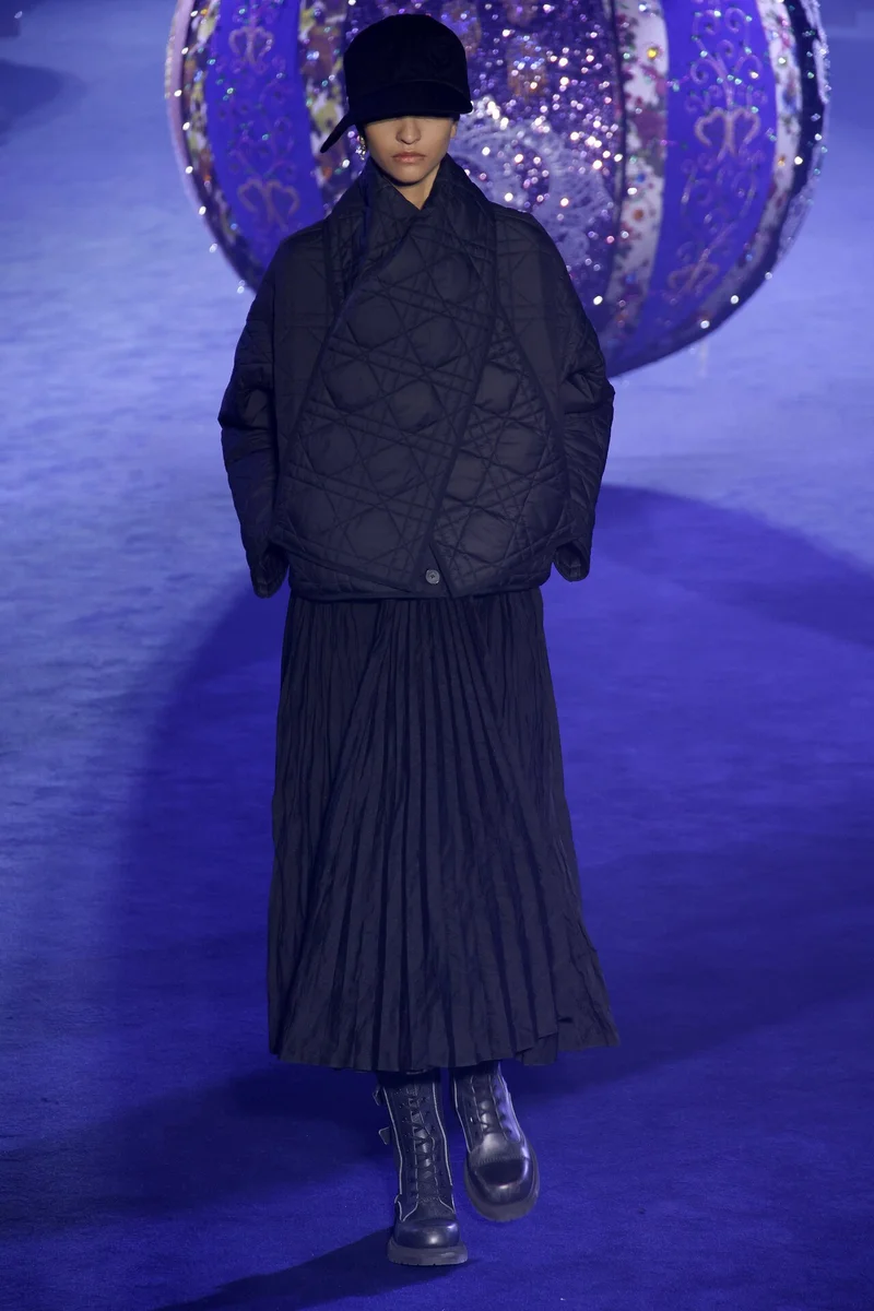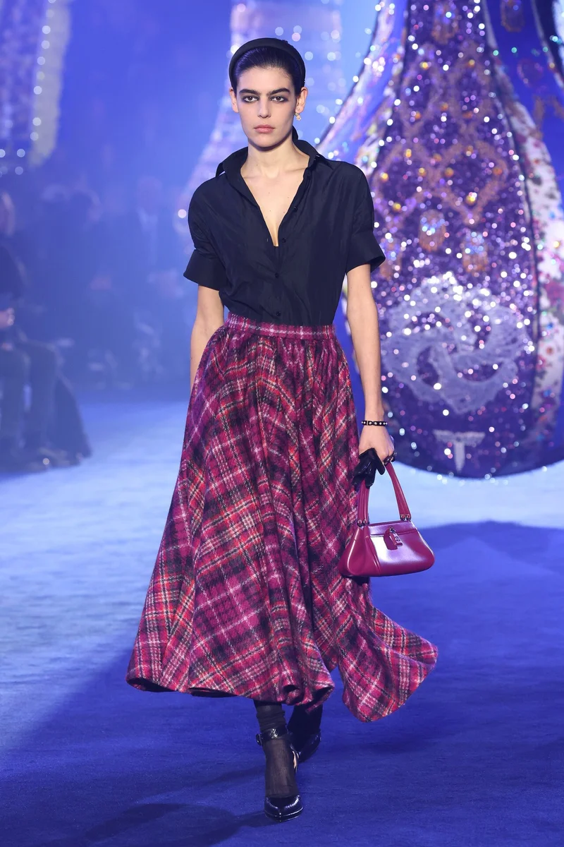 Мария Грация Кюри вдохновилась парижской модой 50-х годов и окунула зрителей в атмосферу того времени. Береты, клетка, плиссированные юбки, размытые принты, классические силуэты и не только демонстрируют архивные образы модного Дома.