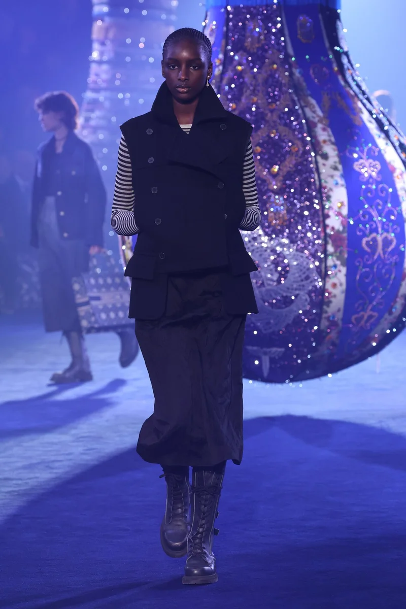 Модельер показала свое восхищение иконами стиля: Эдит Пиаф, Катрин Диор и Жюльетт Греко. Органная музыка и благовония придали показу неуловимую торжественность и несколько ностальгическое настроение.