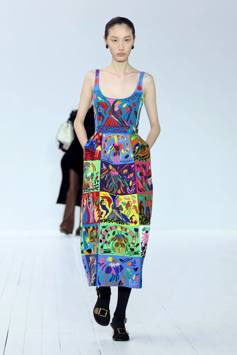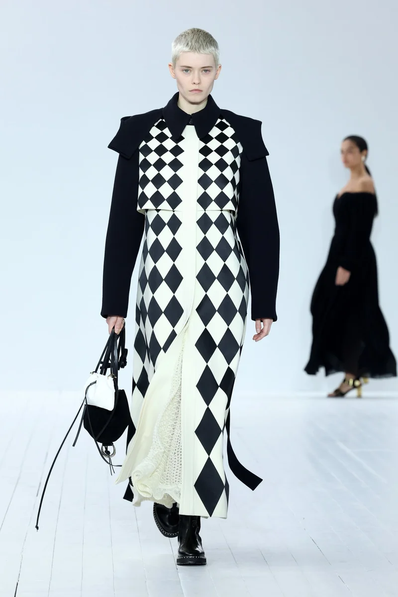 Одним из самых запоминающихся принтов стал узнаваемый ромбик - в этом году многие дизайнеры вспомнили Арлекина и итальянский театр. Стоит отметить, что в коллекцию вошла пара образов в полоску - вот и все принты Chloé этого года.