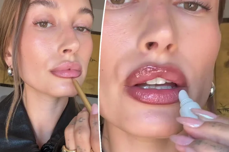 Хайли Бибер показывает Lip Gloss Nails во время выполнения макияжа Источник фото: Социальные сети Хайли