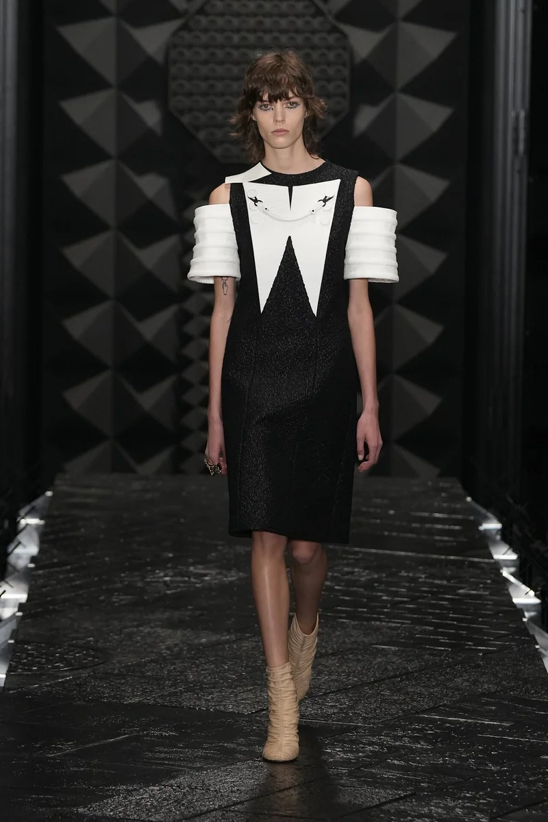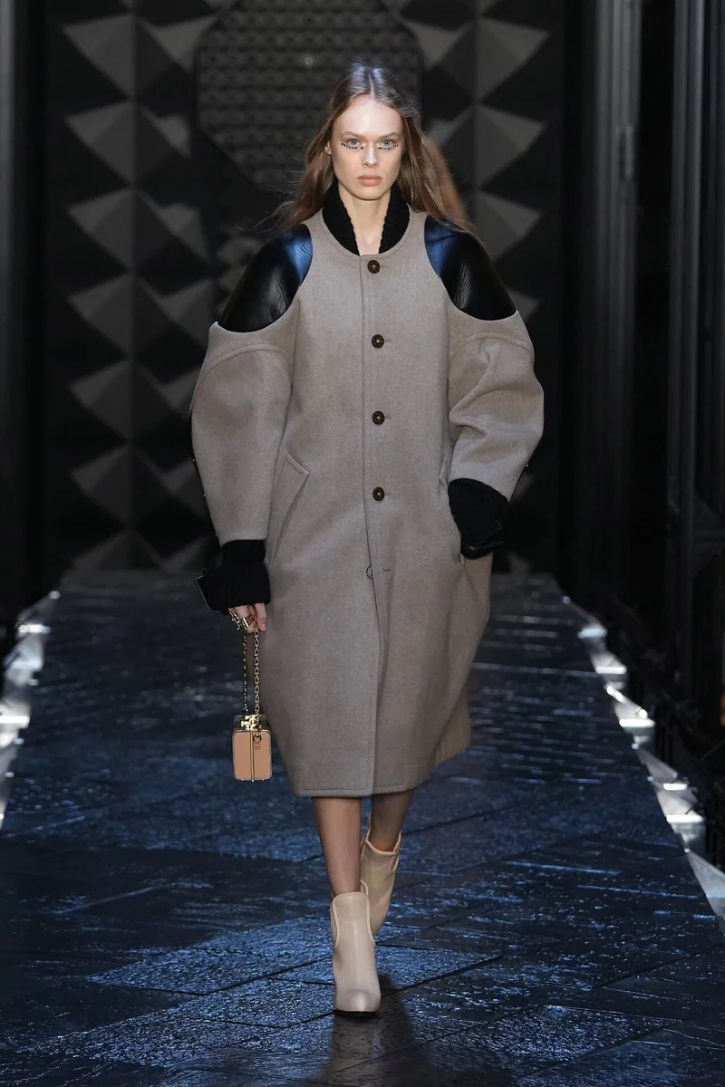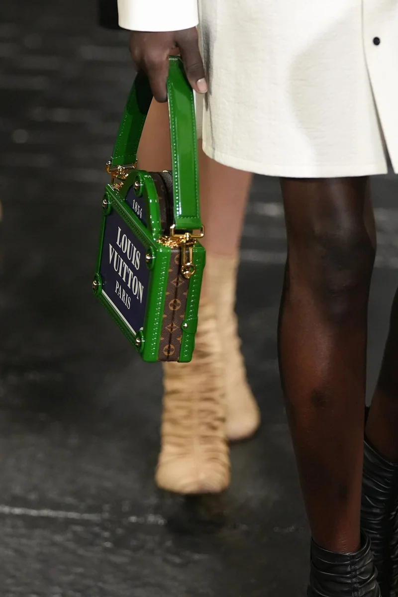 Длинные ремешки стали яркой деталью показа. Они подчеркивали талию даже на оверсайз моделях - получилось необычно и очень женственно. Интересно, что многие дизайнеры демонстрировали широкие ремни из 2000-х на прошедших показах. Однако у Louis Vuitton свой взгляд на этот тренд.