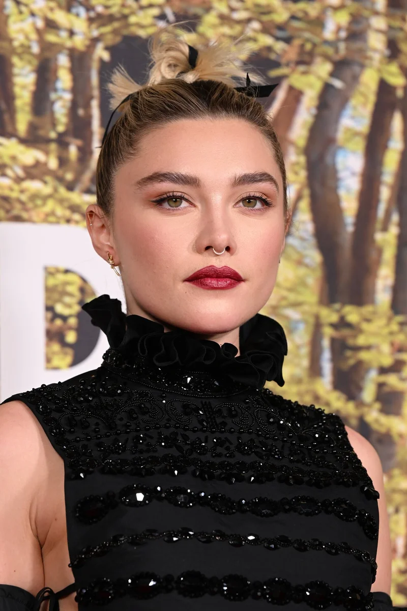 В Лондоне прошел первый показ драмы «Хороший человек», в котором сыграл Морган Фриман и Флоренс Пью. На премьере фильма актриса появилась в свободных брюках и топе на завязках с высоким воротником, который дополнили рукава в пол.