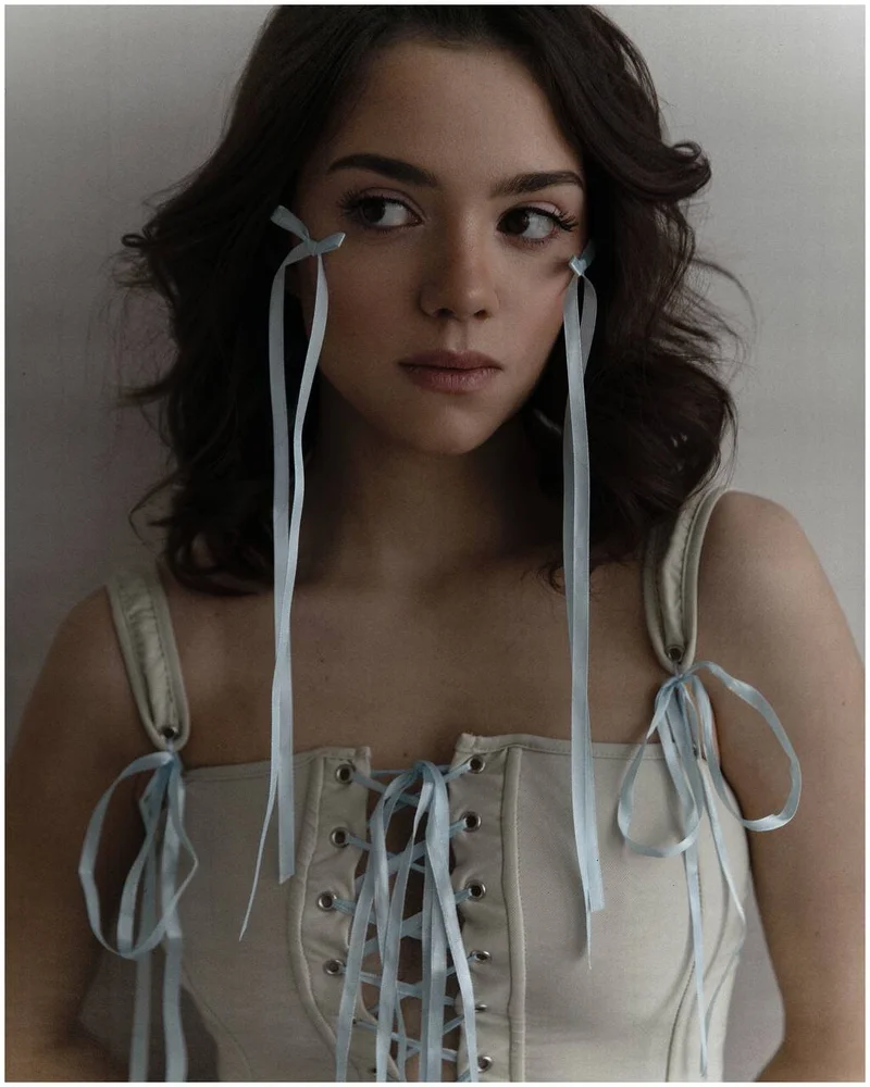 Девушка предстала в двух трогательных образах. В обоих вариантах на Жене были корсеты. Бежевый топ со шнуровкой голубого оттенка выглядит очень мило. Спортсменка дополнила наряд милыми бантиками на скулах. Получилось очень нежно и креативно.