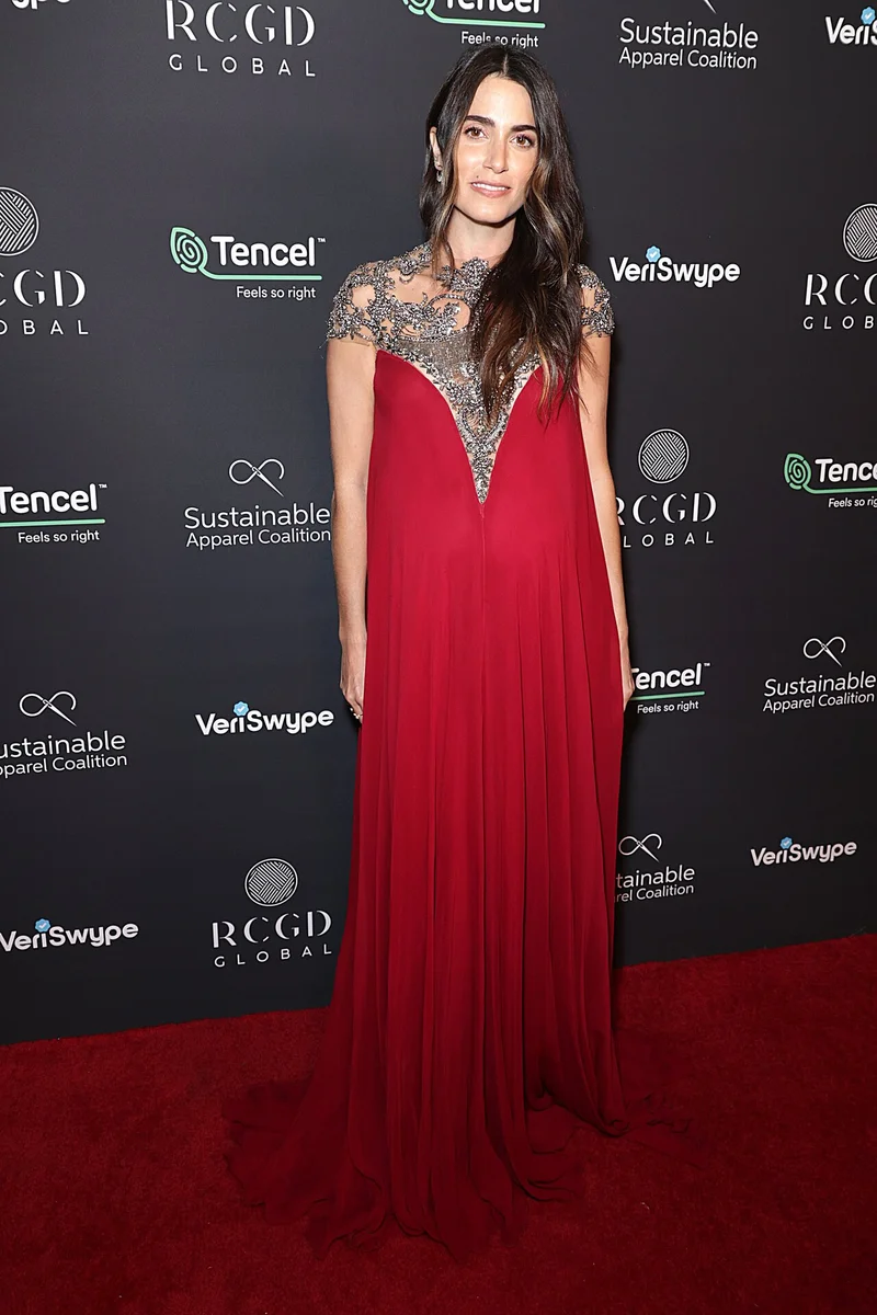 Актриса является послом RCGD Global, она не смогла пропустить такое важное событие. В компании знаменитого супруга она появилась в струящемся красном платье с богато украшенным лифом.